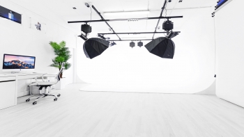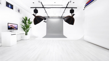 Affordable photo studio with 2 make-up stations, air con, 20 backdrop colours, and easy access to kitchen and waiting area.
